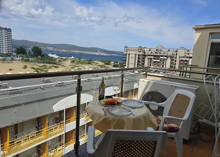 Sea View Dune Apartment Slăntjev Brjag med 1 sovrum, som ligger inom 3 km från Johannes döpares kyrka, har ett minikök på en terrass. Inom 10 minuter med bil från i den här 65 m² stora lägenheten hittar du Gamla Nesebǎr.